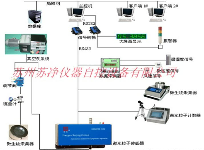 尘埃粒子在线监测系统为一套多点式实时监控系统,能够实时并且动态监测各个关键点的颗粒数、温湿度、压差等参数,从而判别环境的洁净等级。本系统具有控制、报警、数据分析、查询、曲线分析、权限管理等功能。系统包括在线激光尘埃粒子计数器、温湿度传感器、压差传感器、多点式监测软件、报警系统,它采用分散式多点采集,多个测量区域,查询,数据通过RS232-RS485输出接口上传到计算机进行数据集中处理,实现24小时动态实时监测环境中微粒和温湿度等的变化趋势,完成对生产环境的实时监测。